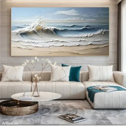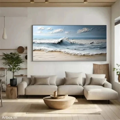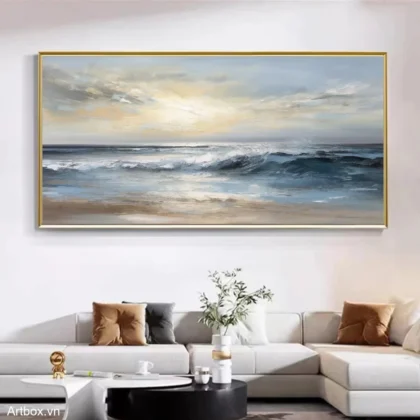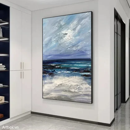 Bình Yên Giữa Biển Cả – Tranh Sơn Acrylic Trừu Tượng Biển Xanh da trời Trang Trí Phòng khách, Phòng ngủ – Phong Cách Hiện Đại