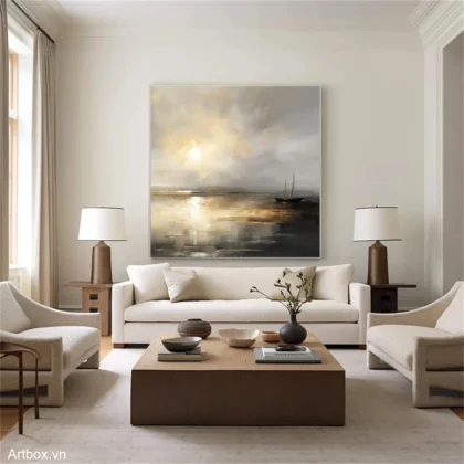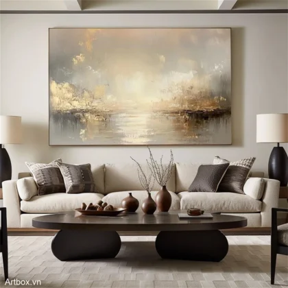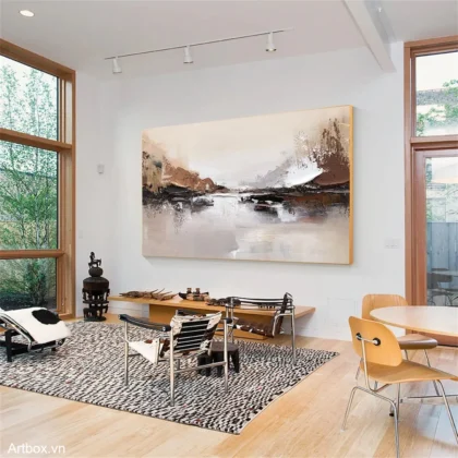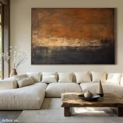 Bình Yên Giữa Đời Thường – Tranh Sơn Acrylic Trừu Tượng Phong cảnh Nâu be Trang Trí Phòng khách, Phòng ngủ – Phong Cách Hiện Đại