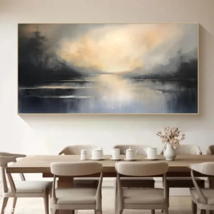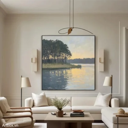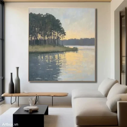 Bình Yên Trên Mặt Nước – Tranh Sơn Acrylic Trừu Tượng Hồ nước Xanh dương Trang Trí Phòng khách, Phòng ngủ – Phong Cách Hiện Đại