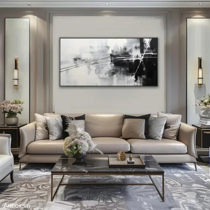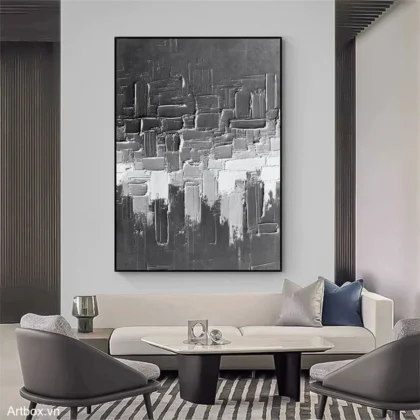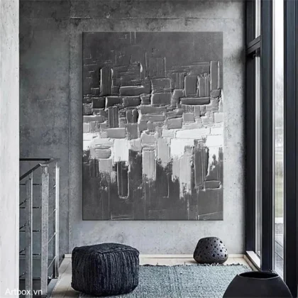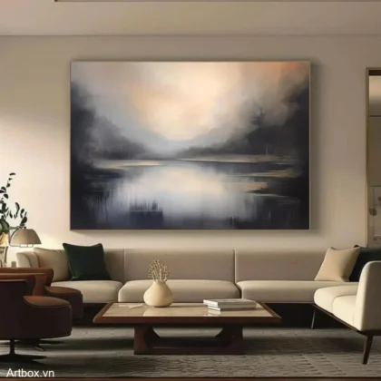 Bình Yên Giữa Hư Không – Tranh Sơn Acrylic Trừu Tượng Hồ nước Xám Trang Trí Phòng ngủ, Phòng khách – Phong Cách Hiện Đại