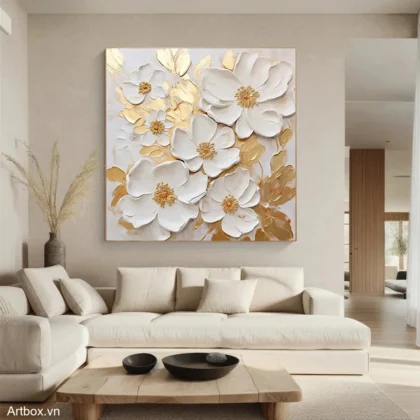 Bình Yên Giữa Cát Trắng – Tranh Sơn Acrylic Trừu Tượng Trừu tượng Nâu be Trang Trí Phòng khách, Phòng ngủ – Phong Cách Hiện Đại