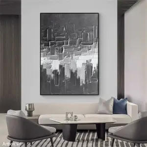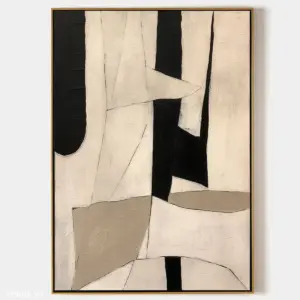 Bản Giao Hưởng Tĩnh Lặng – Tranh Sơn Acrylic Trừu Tượng Trừu tượng Đen trắng Trang Trí Phòng khách, Phòng làm việc – Phong Cách Hiện Đại