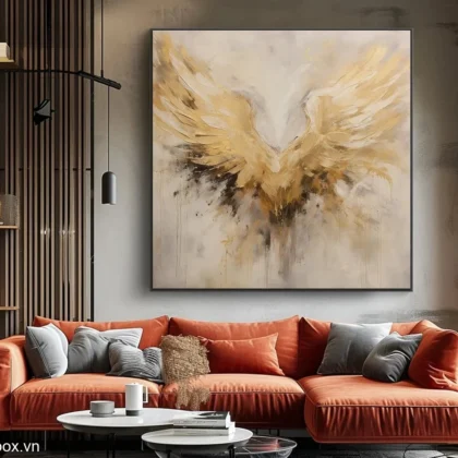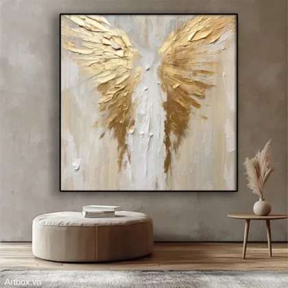 Ánh Sáng Thiên Đường – Tranh Sơn Acrylic Trừu Tượng Hình thể Vàng Trang Trí Phòng khách, Phòng ngủ – Phong Cách Hiện Đại