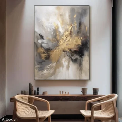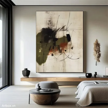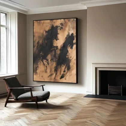 Hòa Quyện Cảm Xúc – Tranh Sơn Acrylic Trừu Tượng Trừu tượng Nâu be Trang Trí Phòng khách, Phòng làm việc – Phong Cách Hiện Đại