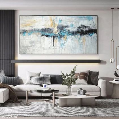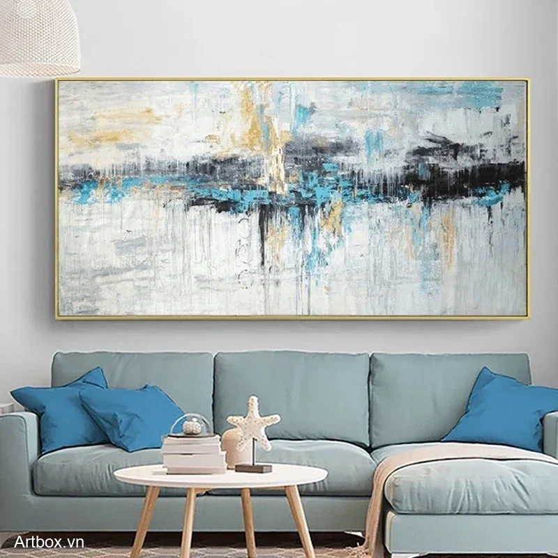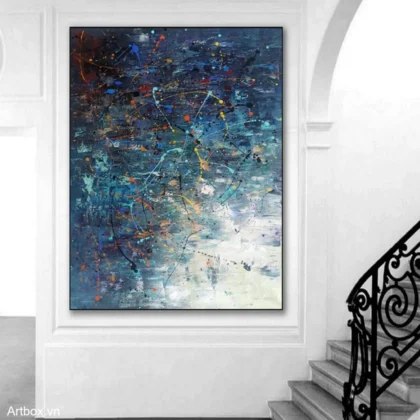Hòa Quyện Sắc Màu – Tranh Sơn Acrylic Trừu Tượng Trừu tượng Xanh dương Trang Trí Phòng khách, Phòng làm việc – Phong Cách Hiện Đại