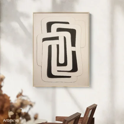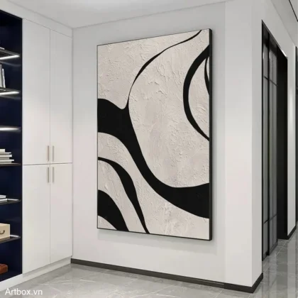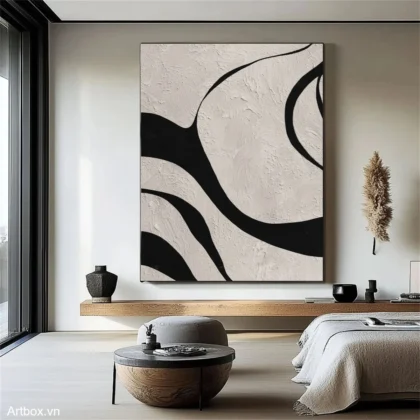 Hòa Quyện Đường Nét – Tranh Sơn Acrylic Trừu Tượng Minimal / Tối giản Đen trắng Trang Trí Phòng khách, Phòng làm việc – Phong Cách Hiện Đại