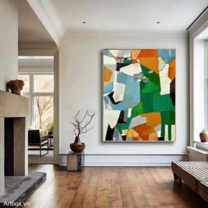 Hình Thể Bí Ẩn – Tranh Sơn Acrylic Trừu Tượng Hình thể Đa sắc Trang Trí Phòng khách, Phòng làm việc – Phong Cách Hiện Đại