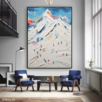 Hành Trình Trên Đỉnh Núi – Tranh Sơn Acrylic Trừu Tượng Phong cảnh Đa sắc Trang Trí Phòng khách, Phòng làm việc – Phong Cách Hiện Đại