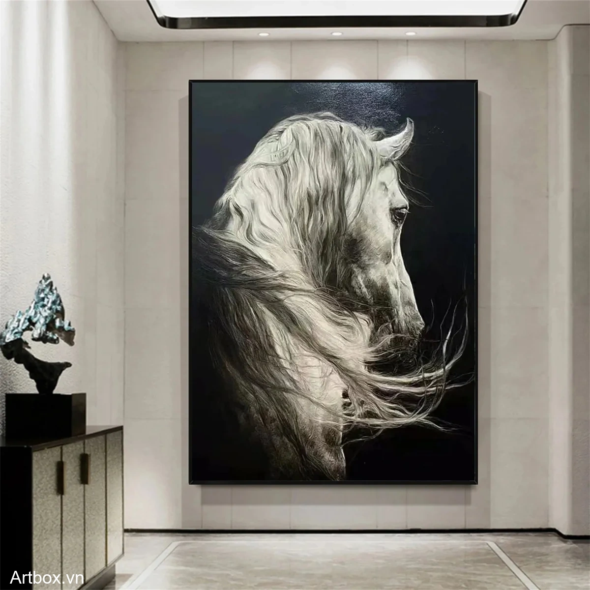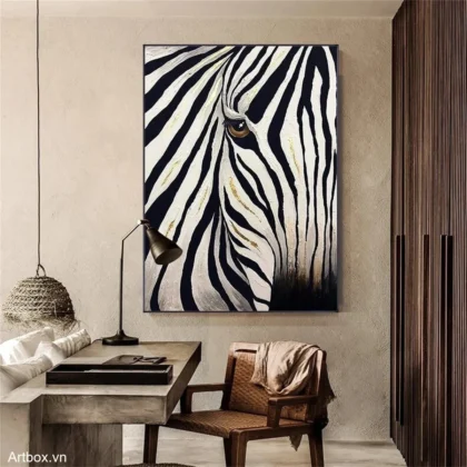 Hơi Thở Của Tự Do – Tranh Sơn Acrylic Trừu Tượng Động vật Đen trắng Trang Trí Phòng khách, Phòng làm việc – Phong Cách Hiện Đại