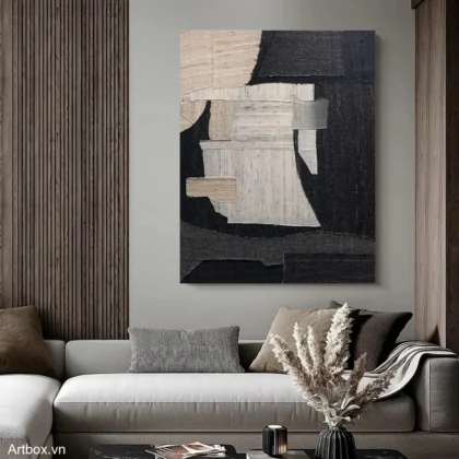 Hình Khối Đen Trắng – Tranh Sơn Acrylic Trừu Tượng Trừu tượng Đen trắng Trang Trí Phòng khách, Phòng làm việc – Phong Cách Hiện Đại