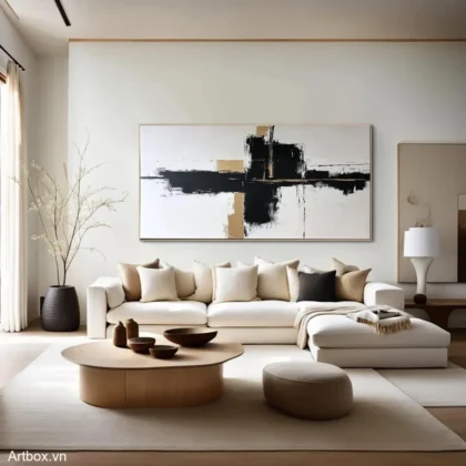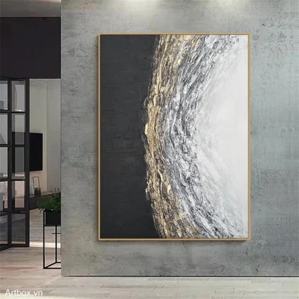 Hòa Quyện Đen Trắng – Tranh Sơn Acrylic Trừu Tượng Trừu tượng Đen trắng Trang Trí Phòng khách – Phong Cách Hiện Đại