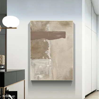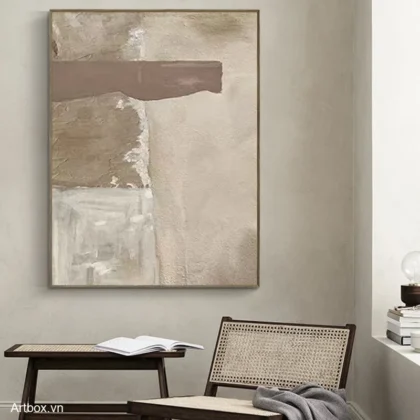 Góc Nhìn Tĩnh Lặng – Tranh Sơn Acrylic Trừu Tượng Trừu tượng Nâu be Trang Trí Phòng khách, Phòng ngủ – Phong Cách Hiện Đại
