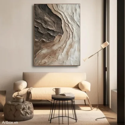 Dòng Chảy Tĩnh Lặng – Tranh Sơn Acrylic Trừu Tượng Trừu tượng Nâu be Trang Trí Phòng khách, Phòng ngủ – Phong Cách Hiện Đại