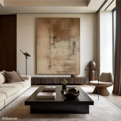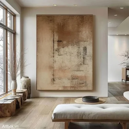 Hòa Nhập Tĩnh Lặng – Tranh Sơn Acrylic Trừu Tượng Phong cảnh Nâu be Trang Trí Phòng khách, Phòng ngủ – Phong Cách Hiện Đại