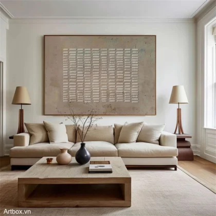 Góc Nhìn Tĩnh Lặng – Tranh Sơn Acrylic Trừu Tượng Trừu tượng Nâu be Trang Trí Phòng khách, Phòng ngủ – Phong Cách Hiện Đại