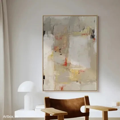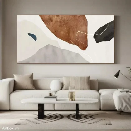 Hòa Nhạc Màu Sắc – Tranh Sơn Acrylic Trừu Tượng Trừu tượng Nâu be Trang Trí Phòng khách, Phòng làm việc – Phong Cách Hiện Đại
