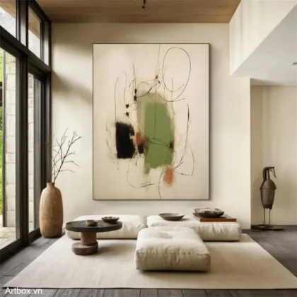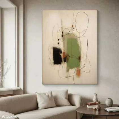 Hòa Nhạc Tĩnh Lặng – Tranh Sơn Acrylic Trừu Tượng Minimal / Tối giản Xanh lá Trang Trí Phòng khách, Phòng làm việc – Phong Cách Hiện Đại