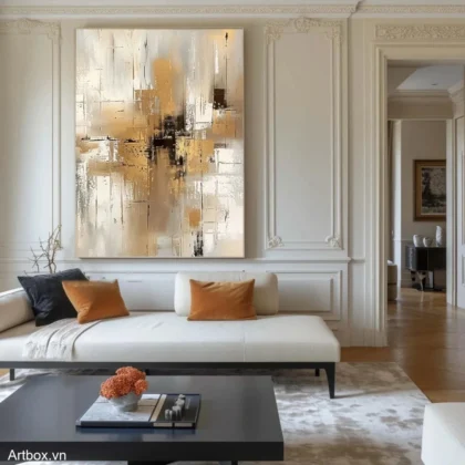 Hòa Quyện Cảm Xúc – Tranh Sơn Acrylic Trừu Tượng Trừu tượng Nâu be Trang Trí Phòng khách – Phong Cách Hiện Đại