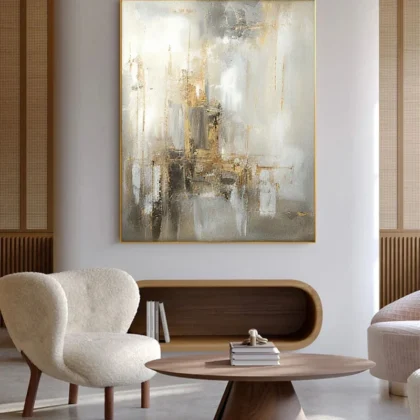 Hòa Nhập Tự Nhiên – Tranh Sơn Acrylic Trừu Tượng Trừu tượng Xám Trang Trí Phòng khách, Phòng ngủ – Phong Cách Hiện Đại