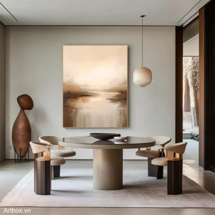 Hòa Quyện Đất Trời – Tranh Sơn Acrylic Trừu Tượng Phong cảnh Nâu be Trang Trí Phòng khách, Phòng ngủ – Phong Cách Hiện Đại