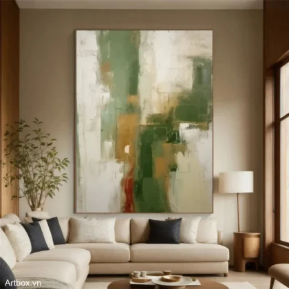 Hòa Quyện Của Tự Nhiên – Tranh Sơn Acrylic Trừu Tượng Trừu tượng Xanh lá Trang Trí Phòng khách, Phòng ngủ – Phong Cách Hiện Đại