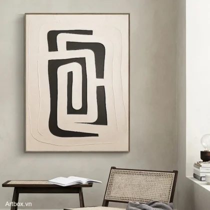 Hòa Quyện Đường Nét – Tranh Sơn Acrylic Trừu Tượng Minimal / Tối giản Đen trắng Trang Trí Phòng khách, Phòng làm việc – Phong Cách Hiện Đại