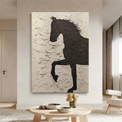 Hồn Nhiên Của Ngựa – Tranh Sơn Acrylic Trừu Tượng Hình thể Đen trắng Trang Trí Phòng khách, Phòng làm việc – Phong Cách Hiện Đại