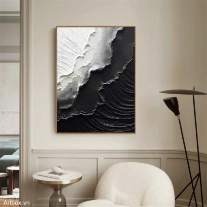 Hòa Quyện Đen Trắng – Tranh Sơn Acrylic Trừu Tượng Trừu tượng Đen trắng Trang Trí Phòng khách – Phong Cách Hiện Đại