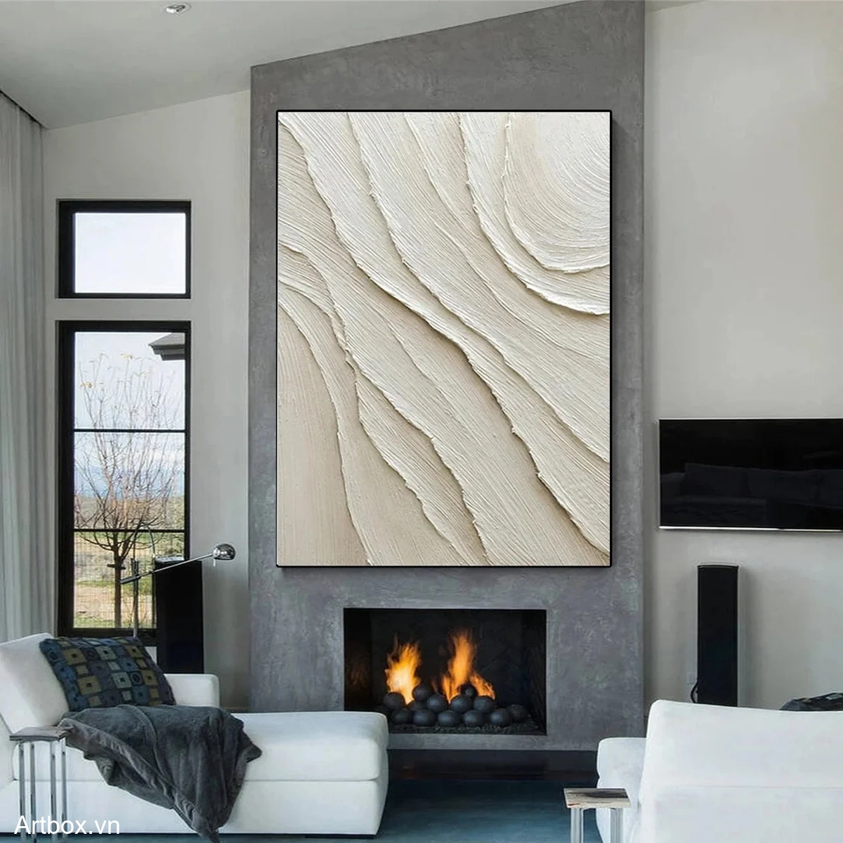 Bản Giao Hưởng Trắng – Tranh Sơn Acrylic Trừu Tượng Minimal / Tối giản Đa sắc Trang Trí Phòng khách, Phòng ngủ – Phong Cách Hiện Đại