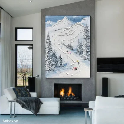 Đỉnh Núi Trắng – Tranh Sơn Acrylic Trừu Tượng Phong cảnh Đen trắng Trang Trí Phòng khách, Phòng làm việc – Phong Cách Hiện Đại