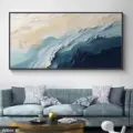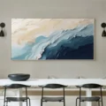 Bức tranh mang đến một cảm giác trừu tượng với những dòng chảy màu sắc hòa quyện. Các lớp màu xanh lam, xanh ngọc và vàng nhạt tạo nên một không gian ấn tượng, như những con sóng vỗ về bờ. Kỹ thuật texture nổi được sử dụng khéo léo, tạo chiều sâu và sự sống động cho tác phẩm. Mỗi đường nét uốn lượn dẫn dắt ánh nhìn, khiến người xem như lạc vào một thế giới huyền bí và thư giãn. Đây là một tác phẩm lý tưởng cho những không gian hiện đại, nơi mà sự tinh tế và nghệ thuật hội tụ.
