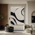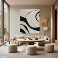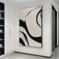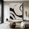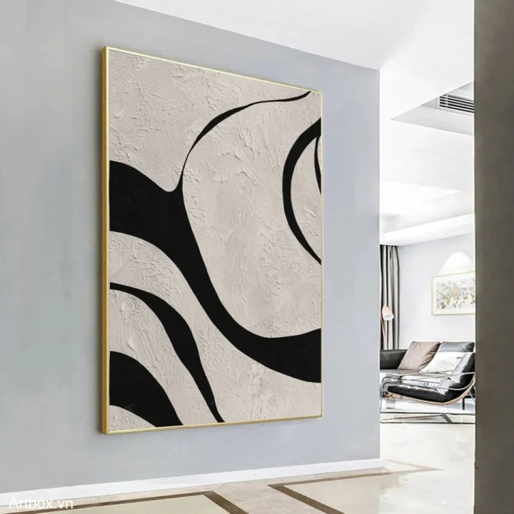 Bức tranh với những đường nét uốn lượn mạnh mẽ và tinh tế, tạo nên một không gian trừu tượng đầy cuốn hút. Sự tương phản giữa màu đen và nền trắng mang lại cảm giác vừa mạnh mẽ, vừa dịu nhẹ. Kỹ thuật texture nổi tạo chiều sâu cho từng đường nét, khiến người xem cảm nhận được sự sống động và năng lượng từ tác phẩm. Màu sắc tối giản nhưng không kém phần ấn tượng, phù hợp cho những không gian hiện đại, mang lại cảm giác thư giãn và tĩnh lặng cho người thưởng thức.