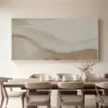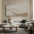Bức tranh mang đến một cảm giác tĩnh lặng và thư thái với những đường nét mềm mại, uốn lượn. Sự hòa quyện của các tông màu nâu be tạo nên một không gian ấm áp, gần gũi, như dòng chảy của thời gian. Kỹ thuật vẽ phẳng mang lại sự sạch sẽ và hiện đại, phù hợp với những không gian sống tối giản. Mỗi đường nét, mỗi sắc thái màu sắc đều gợi lên cảm giác dịu dàng, như một bản nhạc nhẹ nhàng, mời gọi sự thư giãn và suy tư. Tác phẩm này không chỉ là một bức tranh, mà còn là một trải nghiệm cảm xúc cho người thưởng thức.