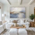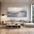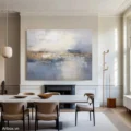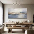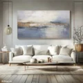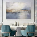 Bức tranh mang đến một không gian yên bình với sự hòa quyện của màu xanh dương và những sắc thái nhẹ nhàng khác. Ánh sáng phản chiếu trên mặt nước tạo nên cảm giác tĩnh lặng, như một buổi sáng sớm trong lành. Các đường nét mềm mại và màu sắc hòa quyện khéo léo, gợi lên hình ảnh của một khung cảnh thiên nhiên tươi đẹp, nơi mà tâm hồn có thể tìm thấy sự thư giãn và thanh thản. Đây là một tác phẩm nghệ thuật hoàn hảo cho những không gian sống hiện đại, mang lại cảm giác gần gũi và dễ chịu.