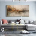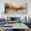 Bức tranh mang đến một không gian trừu tượng đầy cảm xúc, với những gam màu đa sắc hòa quyện một cách tinh tế. Các sắc thái nhẹ nhàng của nâu, vàng và xám tạo nên một bức tranh êm dịu, vừa mạnh mẽ nhưng cũng không kém phần thanh thoát. Kỹ thuật vẽ phẳng giúp làm nổi bật sự mượt mà của màu sắc, mang lại cảm giác hiện đại và tinh tế. Bức tranh như một bản giao hưởng của cảm xúc, khơi gợi sự thư thái và sáng tạo, phù hợp với không gian phòng khách hay phòng làm việc, nơi con người tìm kiếm sự cân bằng và cảm hứng.