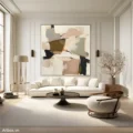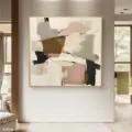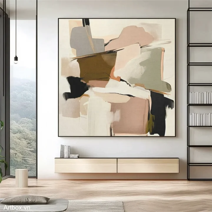 Bức tranh mang đến một thế giới trừu tượng với những mảng màu sắc đa dạng, từ những tông màu nhẹ nhàng như pastel cho đến những điểm nhấn tối màu. Các hình khối được sắp xếp một cách tinh tế, tạo nên sự hài hòa và cân bằng. Sự kết hợp giữa các sắc thái mang lại cảm giác thư thái, nhẹ nhàng, khiến người xem như lạc vào một không gian yên bình. Kỹ thuật vẽ phẳng làm nổi bật sự tinh tế của từng mảng màu, tạo nên một tác phẩm nghệ thuật hiện đại, phù hợp cho những không gian sống ấm cúng và hiện đại.