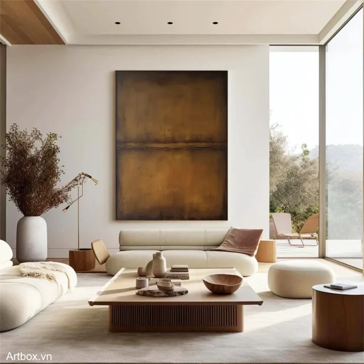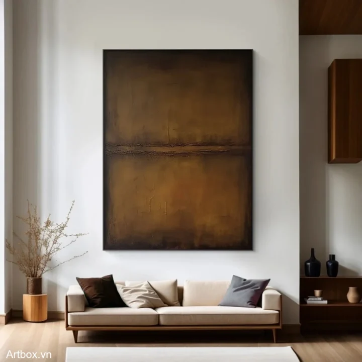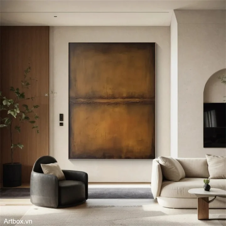 Bức tranh mang đến một không gian yên bình với sắc nâu be ấm áp, tạo cảm giác gần gũi và thân thuộc. Hình thức trừu tượng với các lớp texture nổi bật, kết hợp giữa sự mạnh mẽ và dịu dàng, khiến người xem cảm nhận được chiều sâu và sự chuyển động của không gian. Những đường nét mềm mại, hòa quyện giữa ánh sáng và bóng tối, thể hiện sự giao thoa giữa đất và trời. Đây là tác phẩm lý tưởng cho những không gian hiện đại, mang lại sự thư giãn và tĩnh lặng cho tâm hồn.