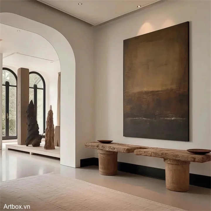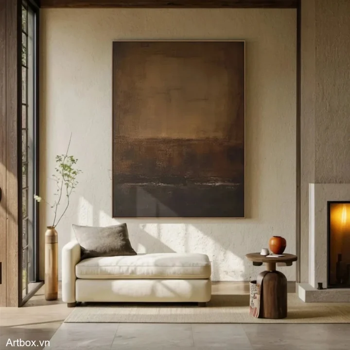 Bức tranh mang đến một cảm giác sâu lắng và ấm áp với các tông màu nâu be hòa quyện, tạo nên một không gian yên bình và thư giãn. Kỹ thuật texture nổi khiến cho bức tranh trở nên sống động, với những lớp màu sắc chồng chéo nhau, tạo chiều sâu và xúc cảm. Đường nét mềm mại và sự chuyển giao giữa các sắc thái màu sắc mang lại cảm giác tự nhiên, như một bức tranh phong cảnh trừu tượng của đất và trời. Đây là một tác phẩm nghệ thuật lý tưởng để tạo điểm nhấn cho không gian sống, mang lại sự bình yên và tĩnh lặng cho người thưởng thức.