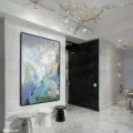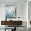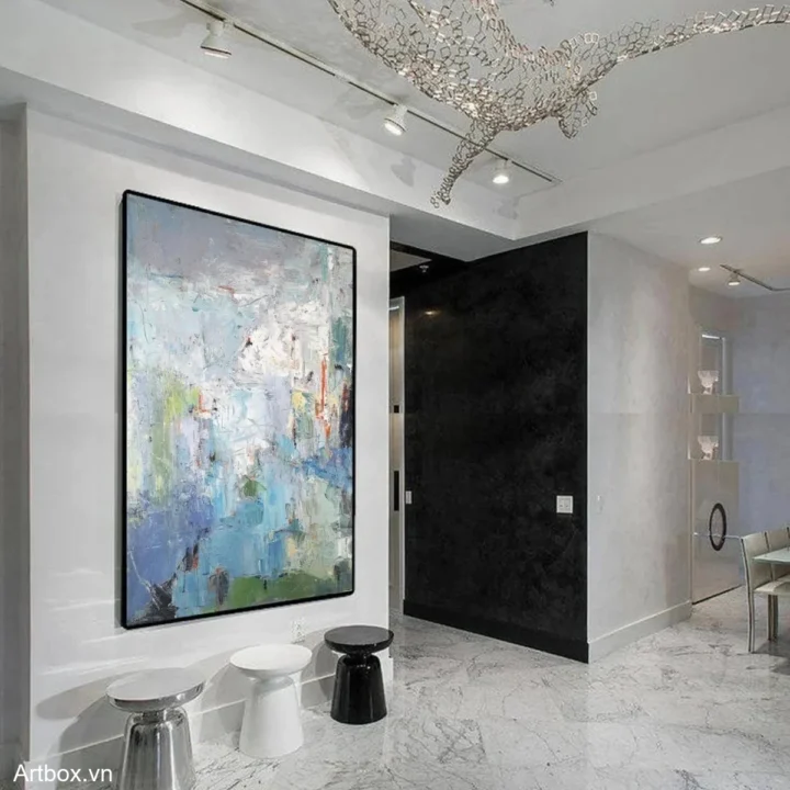 Tranh rất đẹp, màu sắc tươi mới, tạo điểm nhấn cho phòng khách.