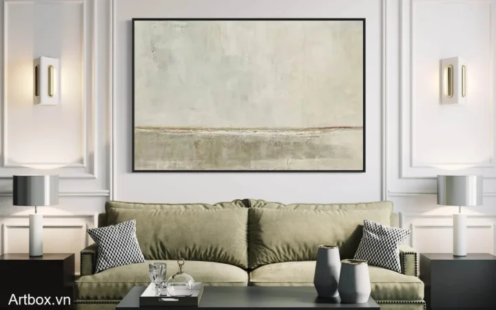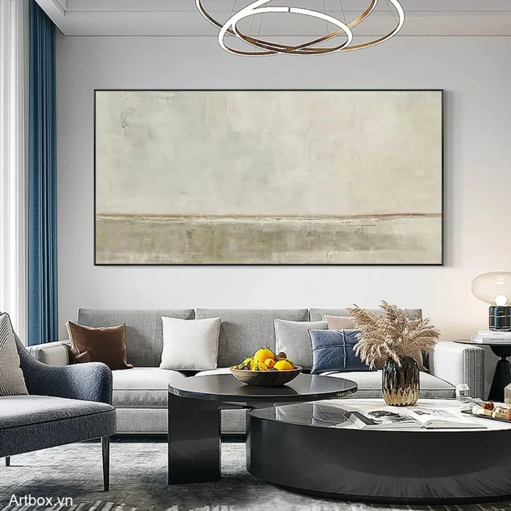 Bức tranh mang đến một không gian tĩnh lặng với những gam màu xám nhẹ nhàng, tạo cảm giác thư thái và yên bình. Các đường nét mềm mại hòa quyện với nhau, thể hiện sự kết nối giữa thiên nhiên và con người. Màu sắc được sử dụng tinh tế, không quá nổi bật nhưng vẫn đủ để thu hút ánh nhìn. Bức tranh như một bức thư gửi gắm tâm tư, mời gọi người xem dừng lại, hít thở và cảm nhận vẻ đẹp giản dị của cuộc sống. Đây là một tác phẩm hoàn hảo cho không gian sống hiện đại, mang lại sự nhẹ nhàng và thanh thoát.