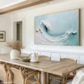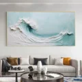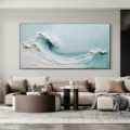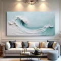 Bức tranh khắc họa hình ảnh sống động của những con sóng biển, với những lớp sơn dày tạo nên hiệu ứng texture nổi, mang lại chiều sâu và sự chuyển động. Màu xanh da trời nhẹ nhàng hòa quyện cùng sắc trắng của bọt sóng, tạo cảm giác tươi mát và thư thái. Bức tranh không chỉ là một tác phẩm nghệ thuật, mà còn là một trải nghiệm cảm xúc, gợi nhắc về sự yên bình và vẻ đẹp của đại dương. Phong cách hiện đại và tối giản khiến nó trở thành điểm nhấn hoàn hảo cho không gian sống, mang lại sự dễ chịu và thanh tịnh cho người chiêm ngưỡng.