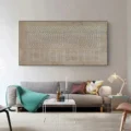 Bức tranh mang đến cảm giác bình yên và gần gũi, với những họa tiết trừu tượng được tạo ra từ các hình khối đơn giản. Màu nâu be chủ đạo tạo ra sự ấm áp, gợi nhớ đến đất và thiên nhiên. Kỹ thuật texture nổi giúp bức tranh có chiều sâu, khiến người xem cảm nhận được sự sống động và chân thật. Các hình tròn và đường nét nhẹ nhàng hòa quyện, tạo nên một tác phẩm nghệ thuật tinh tế, phù hợp cho không gian sống hiện đại, mang lại cảm giác thư giãn và ấm cúng cho người thưởng thức.