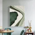 Bức tranh mang đến cảm giác hòa quyện giữa thiên nhiên và nghệ thuật trừu tượng. Những đường nét uốn lượn mềm mại, kết hợp với màu xanh lá tươi mát, tạo nên một không gian thư giãn và dễ chịu. Chất liệu texture nổi làm tăng thêm chiều sâu và sự sống động cho tác phẩm, khiến người xem cảm nhận được sự chuyển động và nhịp điệu của tự nhiên. Sự kết hợp giữa các sắc thái xanh lá và trắng mang lại cảm giác nhẹ nhàng, thanh thoát, như một làn gió mới trong không gian sống. Tác phẩm không chỉ là một bức tranh, mà còn là một trải nghiệm cảm xúc, đưa người xem vào một hành trình khám phá vẻ đẹp giản dị và sâu sắc của cuộc sống.