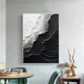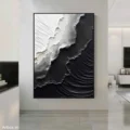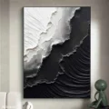 Bức tranh là sự hòa quyện giữa hai tông màu đen và trắng, tạo nên một không gian trừu tượng đầy ấn tượng. Các đường nét và texture nổi bật, mang lại chiều sâu và cảm giác sống động cho tác phẩm. Những lớp sơn dày và mịn màng, kết hợp với các đường nét uốn lượn, tạo ra sự tương phản mạnh mẽ, thể hiện sự giao thoa giữa ánh sáng và bóng tối. Tác phẩm không chỉ thu hút ánh nhìn mà còn gợi lên những suy tư sâu sắc về cuộc sống và cảm xúc. Đây là một sự lựa chọn hoàn hảo cho những không gian hiện đại, nơi mà nghệ thuật và thiết kế gặp gỡ.