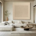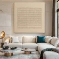 Bức tranh mang đến một cảm giác tĩnh lặng và thanh bình với nền be nhẹ nhàng, kết hợp với các đường nét tinh tế tạo thành những hình khối đơn giản. Kỹ thuật texture nổi tạo chiều sâu cho tác phẩm, khiến cho mắt người xem như muốn khám phá từng chi tiết nhỏ. Sự tối giản trong thiết kế không chỉ thể hiện sự hiện đại mà còn mang lại cảm giác ấm cúng, gần gũi. Đây là một tác phẩm hoàn hảo cho không gian sống hoặc làm việc, nơi mà sự bình yên và sáng tạo được tôn vinh.