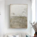 Bức tranh mang đến một không gian tĩnh lặng và thư thái, với các tông màu nâu be nhẹ nhàng hòa quyện. Những lớp sơn dày tạo nên độ sâu và kết cấu nổi bật, gợi mở cảm giác ấm áp và gần gũi. Hình ảnh trừu tượng không cụ thể khiến người xem cảm nhận được sự tự do trong suy nghĩ, như một bức tranh của tâm hồn. Sự hòa quyện giữa các sắc thái màu sắc tạo ra một bầu không khí yên bình, thích hợp cho những không gian nghỉ ngơi và thư giãn.