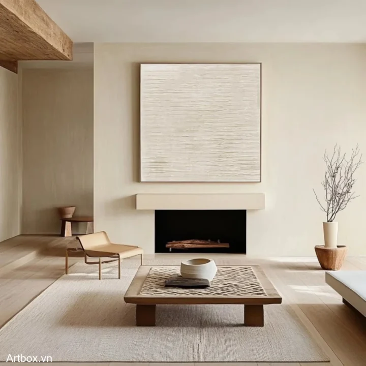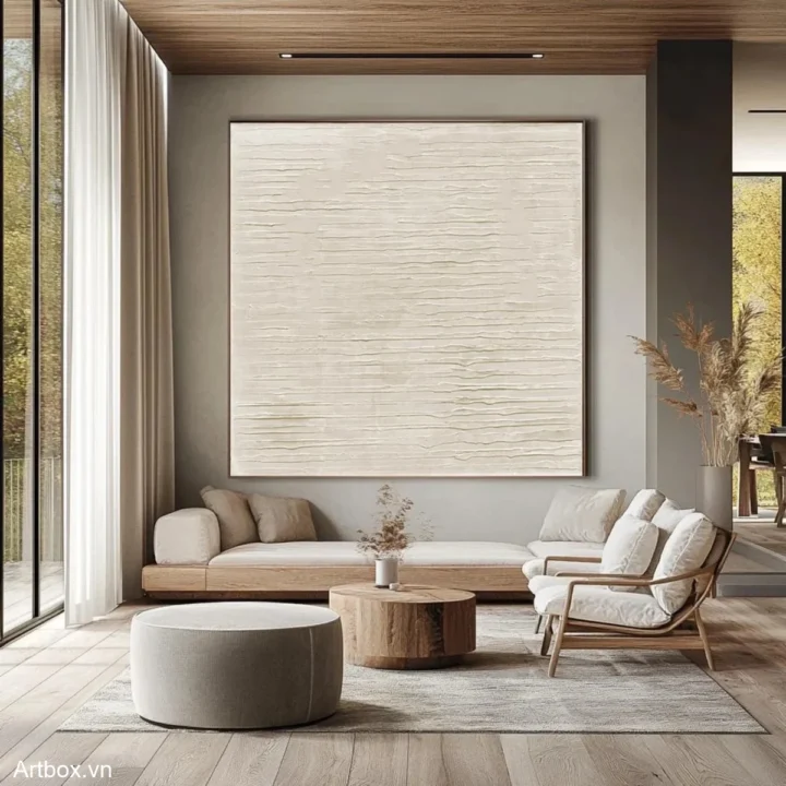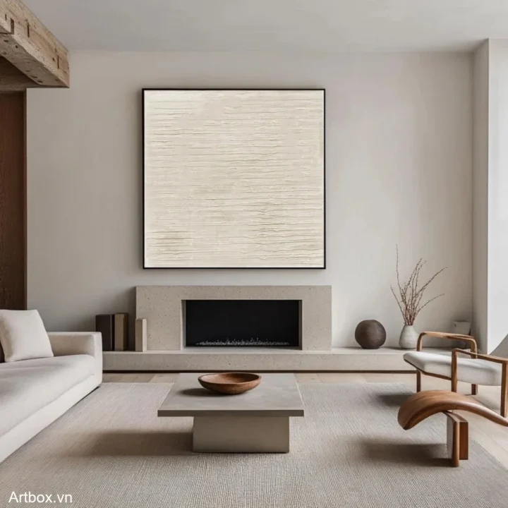 Bức tranh mang đến cảm giác bình yên với gam màu nâu be nhẹ nhàng, tạo nên một không gian tĩnh lặng và thư giãn. Kỹ thuật texture nổi được sử dụng khéo léo, mang lại chiều sâu và sự sống động cho bề mặt. Những đường nét uốn lượn, mềm mại như gợi nhớ đến sự chuyển động của thời gian, khơi dậy cảm giác gần gũi với thiên nhiên. Bức tranh không chỉ là một tác phẩm nghệ thuật mà còn là một điểm nhấn tinh tế, phù hợp cho những không gian hiện đại, nơi con người tìm kiếm sự tĩnh lặng và cảm xúc ấm áp trong cuộc sống hàng ngày.
