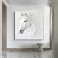 Bức tranh khắc họa một chú ngựa với những đường nét tinh tế, mang đến cảm giác mạnh mẽ nhưng cũng rất dịu dàng. Sử dụng kỹ thuật texture nổi, bề mặt tranh tạo nên chiều sâu và sự sống động, phản ánh sự tự do và sức mạnh của chú ngựa. Màu trắng chủ đạo không chỉ làm nổi bật hình ảnh mà còn tạo cảm giác thanh thoát, nhẹ nhàng. Bức tranh này không chỉ là một tác phẩm nghệ thuật mà còn là biểu tượng của sự tự do, hòa mình vào thiên nhiên, phù hợp với những không gian sống hiện đại và tinh tế.