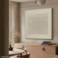 Bức tranh mang đến một cảm giác nhẹ nhàng và thanh thoát với các hình khối được sắp xếp một cách có chủ ý. Màu sắc chính là tông be ấm áp, tạo ra một không gian ấm cúng và thư giãn. Các hình vuông nhỏ với texture nổi tạo nên chiều sâu và sự tương phản thú vị, làm nổi bật tính nghệ thuật của tác phẩm. Sự đơn giản trong thiết kế khiến cho bức tranh dễ dàng hòa nhập vào nhiều không gian, từ phòng khách hiện đại đến phòng làm việc yên tĩnh, mang lại cảm giác bình yên và tập trung.