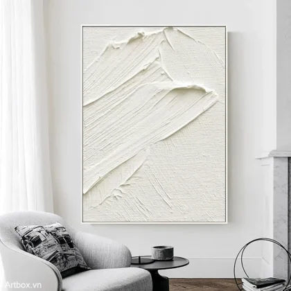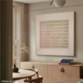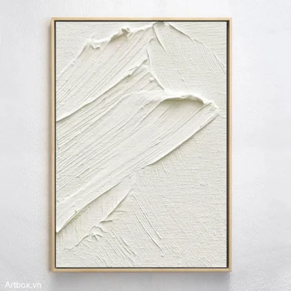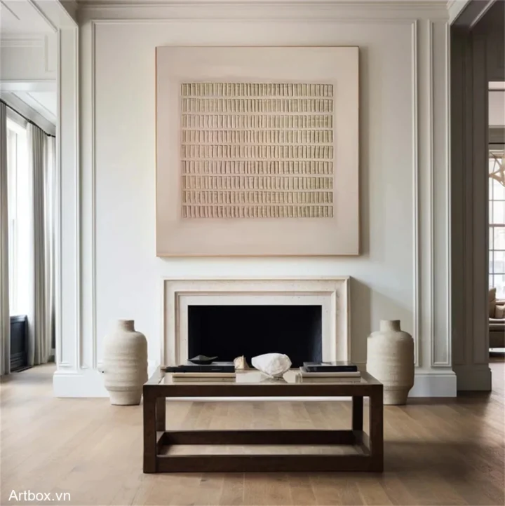 Bức tranh mang đến một cảm giác yên bình và nhẹ nhàng với các đường nét tối giản, tạo thành một cấu trúc hài hòa. Màu nâu be ấm áp, kết hợp với texture nổi, tạo ra chiều sâu và sự gắn kết trong không gian. Những hình khối đơn giản, đều đặn như những gợn sóng trên mặt nước, khơi gợi cảm xúc thư thái và ấm cúng. Đây là tác phẩm lý tưởng cho những ai yêu thích sự tối giản và tinh tế, phù hợp với không gian sống hiện đại, nơi mà nghệ thuật và thiết kế hòa quyện một cách hoàn hảo.